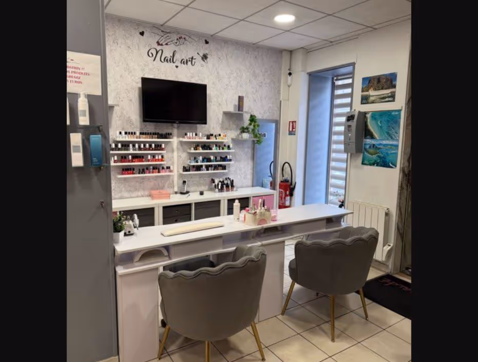 Grande entrée avec 2 postes manucure un poste caisse et coin café ( possibilité de faire d'autre poste manucure)